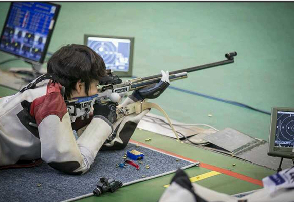 在韩国仁川举行的第十七届亚运会女子50米步枪三种姿势决赛中,我校体育学院2014级运动训练专业学生陈东琦与国家队队友合作以1737环的成绩获得团体金牌;同时以资格赛排名第八进入个人决赛,最终收获个人第四名。在此前进行的女子50米步枪卧射项目中,陈东琦与队友合作,以1854.1环的成绩获得团体银牌,并以619.6环获个人第五名,其队友分获第十三名、第十六名。首次参加亚运会的陈东琦,以1个冠军、1个亚军、1个第四名、1个第五名的成绩,完美收官,这也是时隔32年之后,内蒙古步枪运动员再次获得亚运会桂冠。