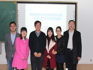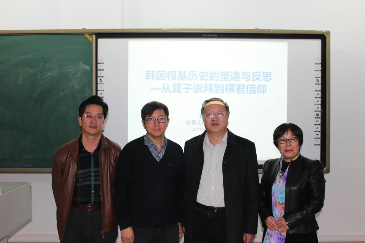 2015年10月30日下午,“亚洲共同体及东亚国际史系列讲座”邀请了南开大学博士生导师孙卫国教授,为我院师生做了“韩国根基历史的所在与反思——从箕子崇拜到檀君信仰”的专题讲座。孙老师从“根基历史”释义开始,介绍了中国古代箕子其人,箕子东去朝鲜,朝鲜的箕子崇拜与朝鲜历史的建构,以及箕子认同消亡与檀君信仰勃兴等几个问题,孙老师的讲座客观地再现了韩国历史上的民族信仰以及变迁,揭示了“现实需求、当下意识与民族认同”是其信仰选择的依据。讲座开拓了师生学术视野,启发了学生思考,最后进行了有效的师生互动。
