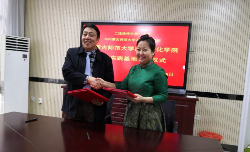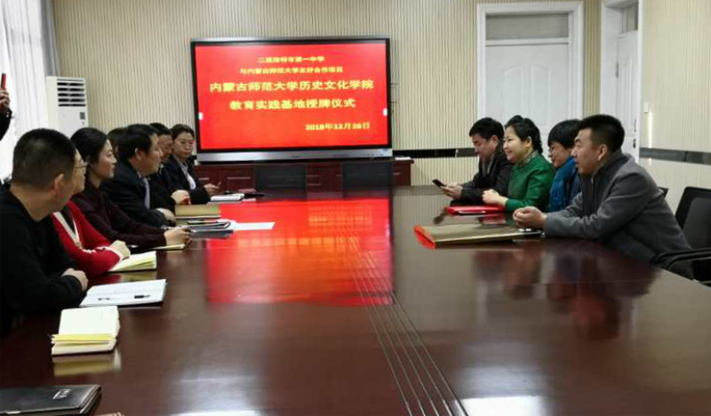 2018年12月26日,yl8858永利集团院长白玉双、王海凤副教授、历史学系副系主任齐英、教学与科研办公室副主任乌力吉通拉嘎一行四人赴二连浩特市调研实习工作,并与第一中学和二连浩特市蒙古族中学举行教育实习基地合作协议签订暨挂牌仪式。