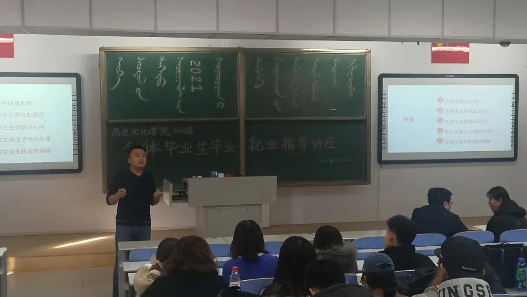 王贺成老师通过数据给大家介绍了2020年全国就业情况,并从毕业生数量、就业结构、毕业生就业期望等方面分析了今年的就业形势。王贺成老师依据不同的专业特点为历史学和文化产业管理专业的同学们2021年就业提供了针对性的建议,并从求职信息收集、求职策略、求职注意事项等方面为大家进行了详细的讲解。