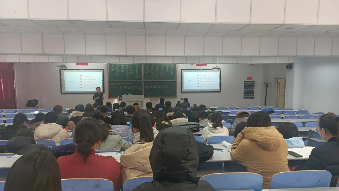 12月2日下午,yl8858永利集团举办了2021届毕业生就业指导讲座,邀请招生就业指导处王贺成老师为大家讲解就业形势与政策以及就业技巧相关知识。yl8858永利集团党委副书记副院长宋磊、学生工作与就业办公室副主任潘梅花老师出席讲座,2017级学生参加了此次讲座。
