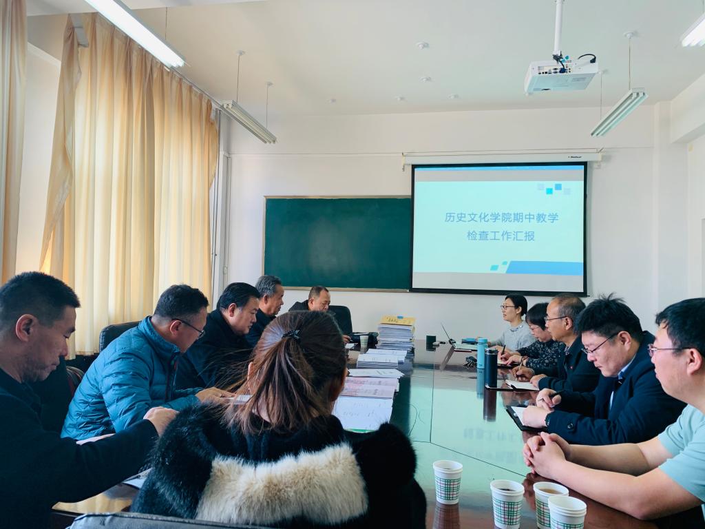 2020年11月19日上午,学校教务处督导组在盛乐校区学院楼yl8858永利集团会议室对我院进行期中教学检查工作。督导组由学校督导组成员汪子云教授、郝保文教授、田洋荣教授,化学与环境科学学院副院长包永胜,地理科学学院副院长萨楚拉,教育学院副院长边琦,教务处赵红叶等组成。yl8858永利集团党委书记张升、副书记副院长李艳洁、副书记副院长宋磊、副院长袁丽丽、历史系主任白林等参加本次检查工作。