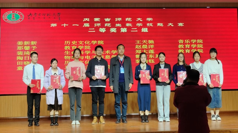 冬月新至,初雪清浅。11月4日到5日,在白林老师与张旭老师的指导下,我院21级1班田晓轲、21级2班冯冰雅、21级3班姜新新、园园四位学生参加了永利官网第十一届师范生教学技能大赛的笔试与面试,并取得优异成绩。其中田晓轲、姜新新获得二等奖,园园获得三等奖,冯冰雅获得优秀奖。