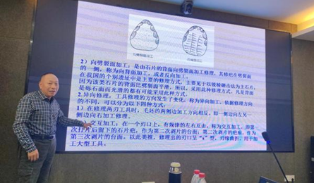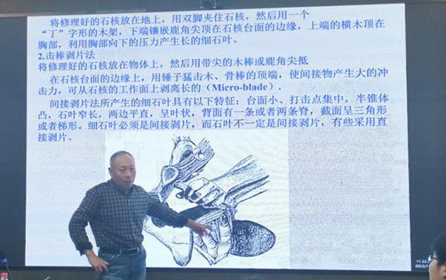 11月12日,陈教授为我们着重介绍了石器的打制方法以及石器用料的分辨方法,对各种石料的概念进行阐述,展示了直接和间接两种剥制技术打制出的不同石器,并且讲解了工具的修整方式以及对于疤痕类型的分析
