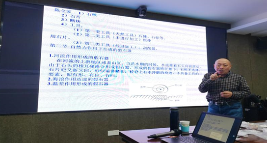 11月10 日,讲座的第一天,陈教授为我们讲解了旧石器的基本概念,并且将理论知识与石器标本结合,指导同学们对石器标本的基本特征进行辨认。