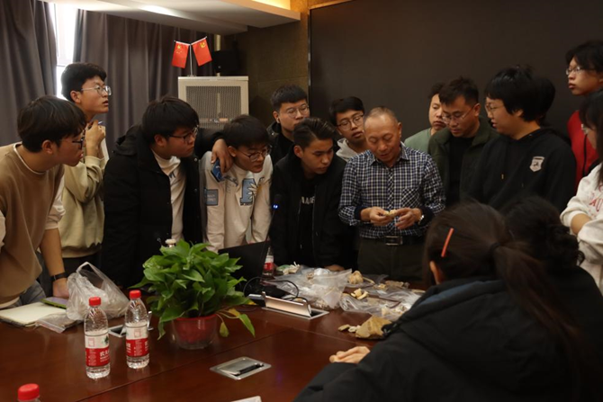 11月14号,陈教授结合我们田野考察收获的石器进行讲解,向我们介绍了打制石器所用的工具。