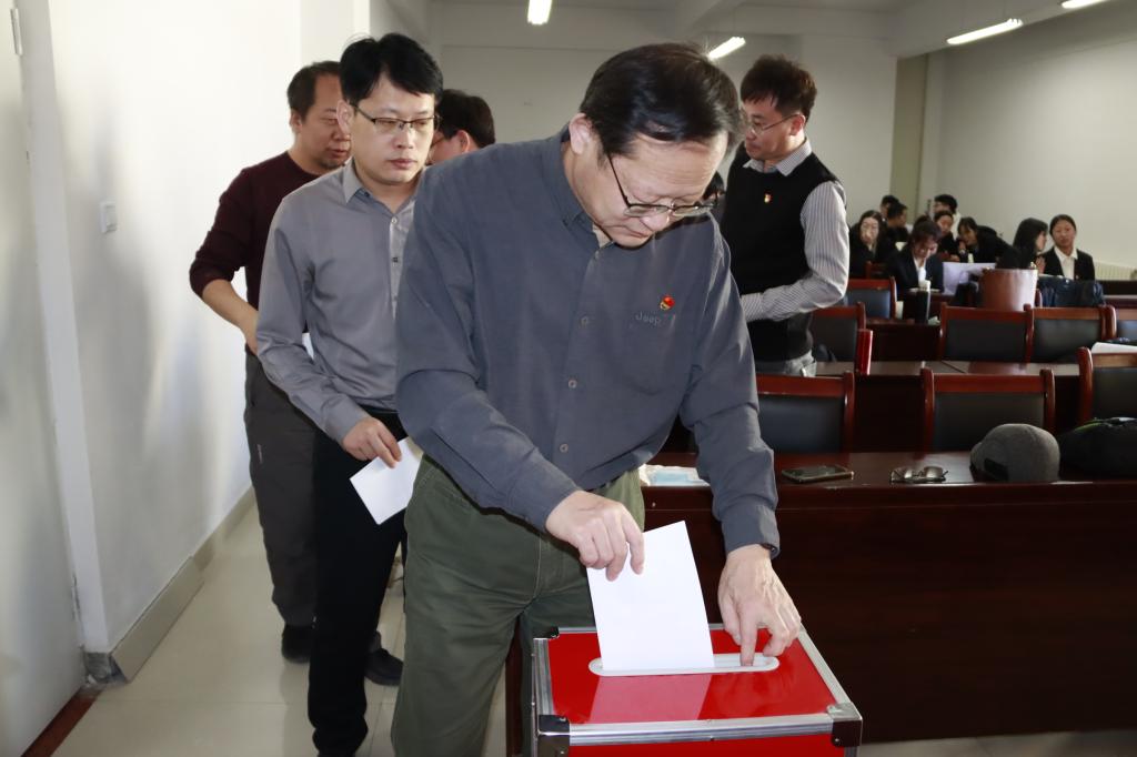 11月30日13时,yl8858永利集团党委换届选举党员大会在学院楼B座602室胜利召开。学校党委组织部干部教育科科长张春林,学院党委书记李艳洁,副书记、副院长檀晶,副院长白林,原党委成员牧仁、袁丽丽及yl8858永利集团全体党员参加此次会议,会议由李艳洁主持。