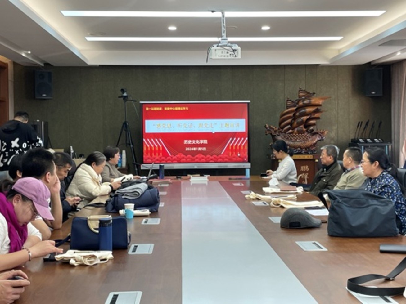 李艳洁书记总结强调“感党恩、听党话、跟党走”是我们教师工作今后必须关注和牢记的主题,大家只有提高自己的政治站位,把教育、教学和相关课题、项目申报工作与内蒙古高质量发展的目标相结合,才能真正凸显实践意义与应用价值。与会教师们纷纷表示,通过此次宣讲,对近平总书记对内蒙古的重要指示精神有了更加深刻地理解和把握,下一步将立足岗位,以奋发有为的实际行动,为谱写中国式现代化建设内蒙古新篇章贡献自己的力量。