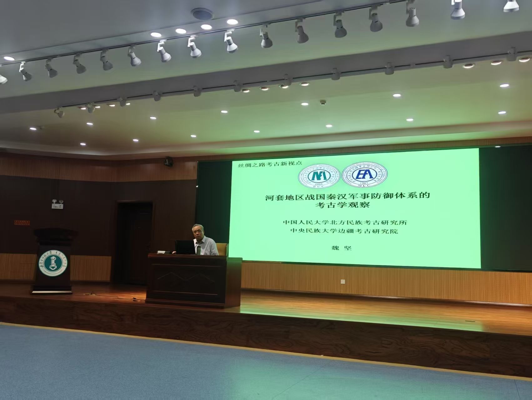 魏坚教授以"考古研史三题"为学术导引,系统阐释了中华文明史研究、国家形成过程以及北方民族在中华多元一体格局中的历史贡献,深刻揭示了边疆考古的学术价值。通过大量一手考古资料,魏坚教授以时间轴为序,结合大量实地考察图片,生动展示了河套地区长城遗址、军事障塞、边城遗迹等考古发现,详细解读了这些珍贵实物史料对研究古代政治经济、军事防御和民族融合的重要学术意义。其深厚的田野工作经验和生动的案例讲解,为在场师生带来了一场理论与实践并重的学术盛宴。
