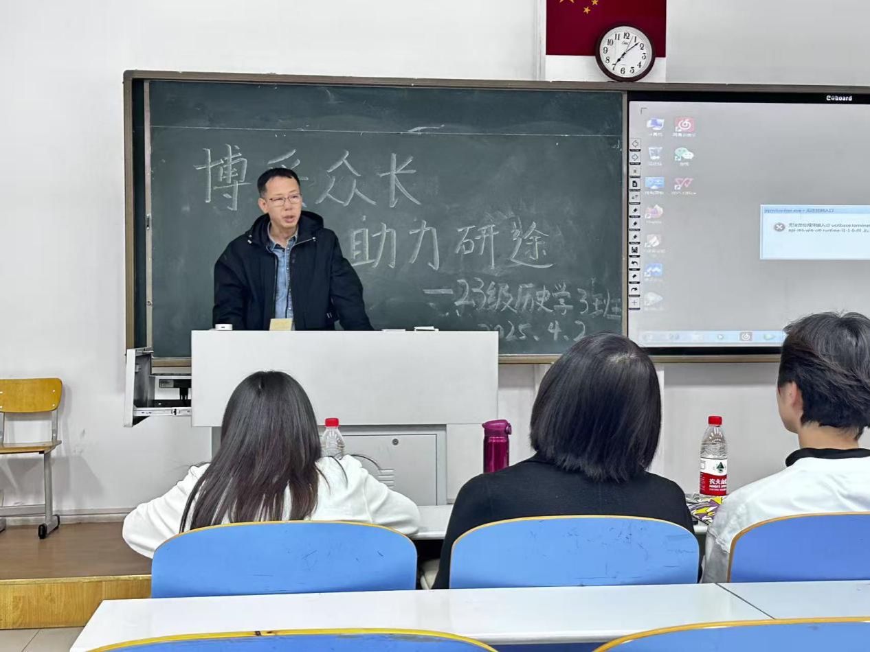 2025年4月2日,yl8858永利集团2023级历史学3班在班主任王海凤老师的引领下,成功组织了一场旨在助力学生深入了解考研政策、院校信息和备考策略的交流盛会。本次交流会由王海凤老师亲自主持,吸引了2023级3班全体52名同学以及学院其他专业和年级的百余名学生热情参与。
