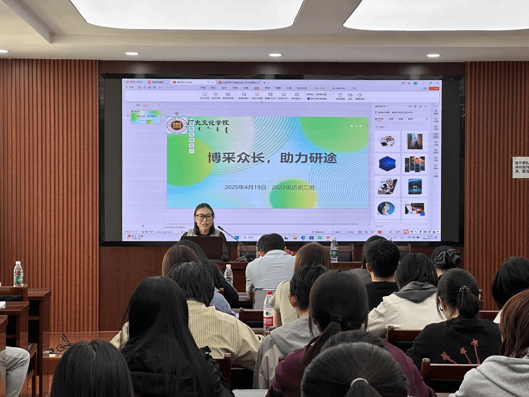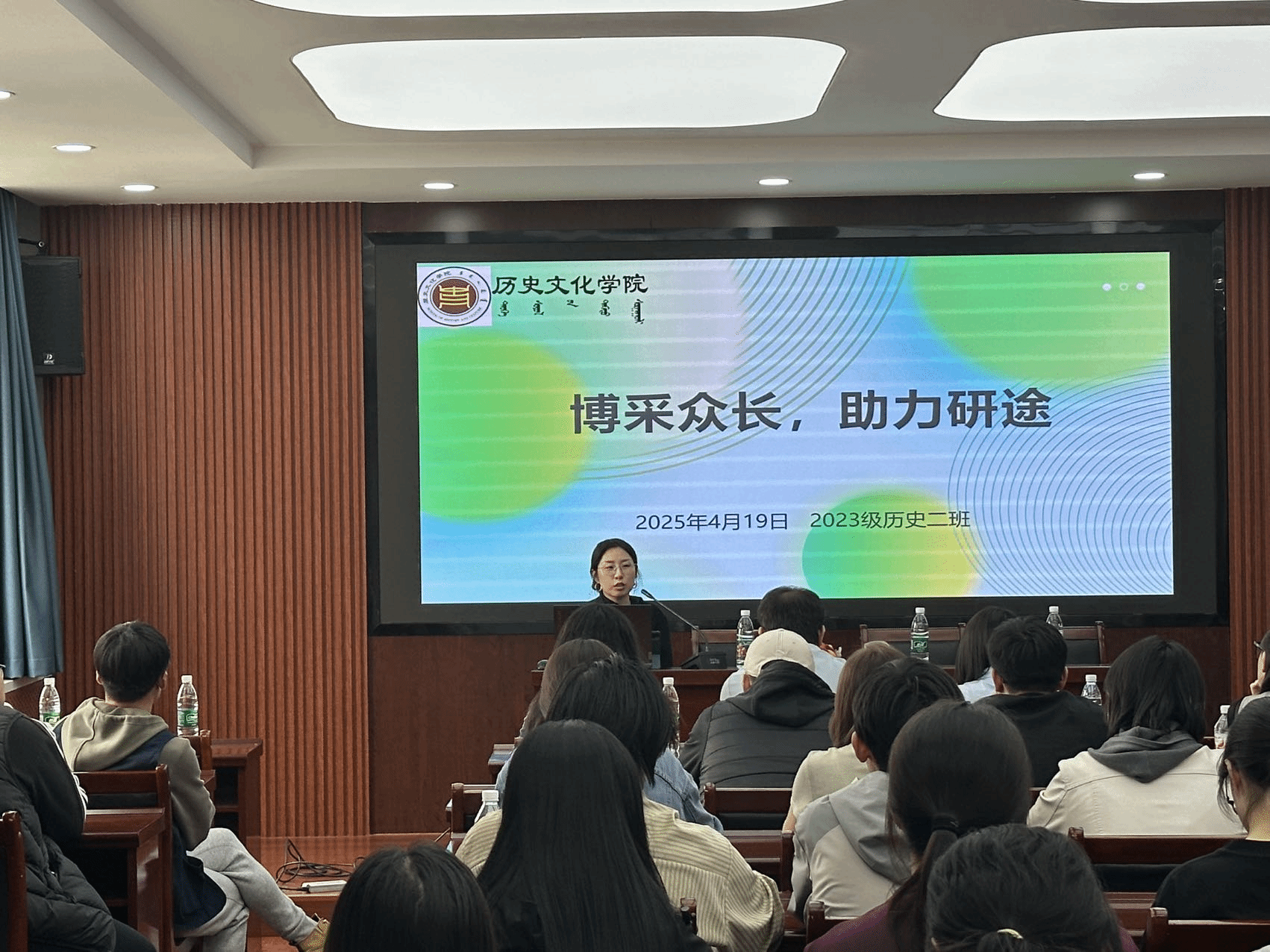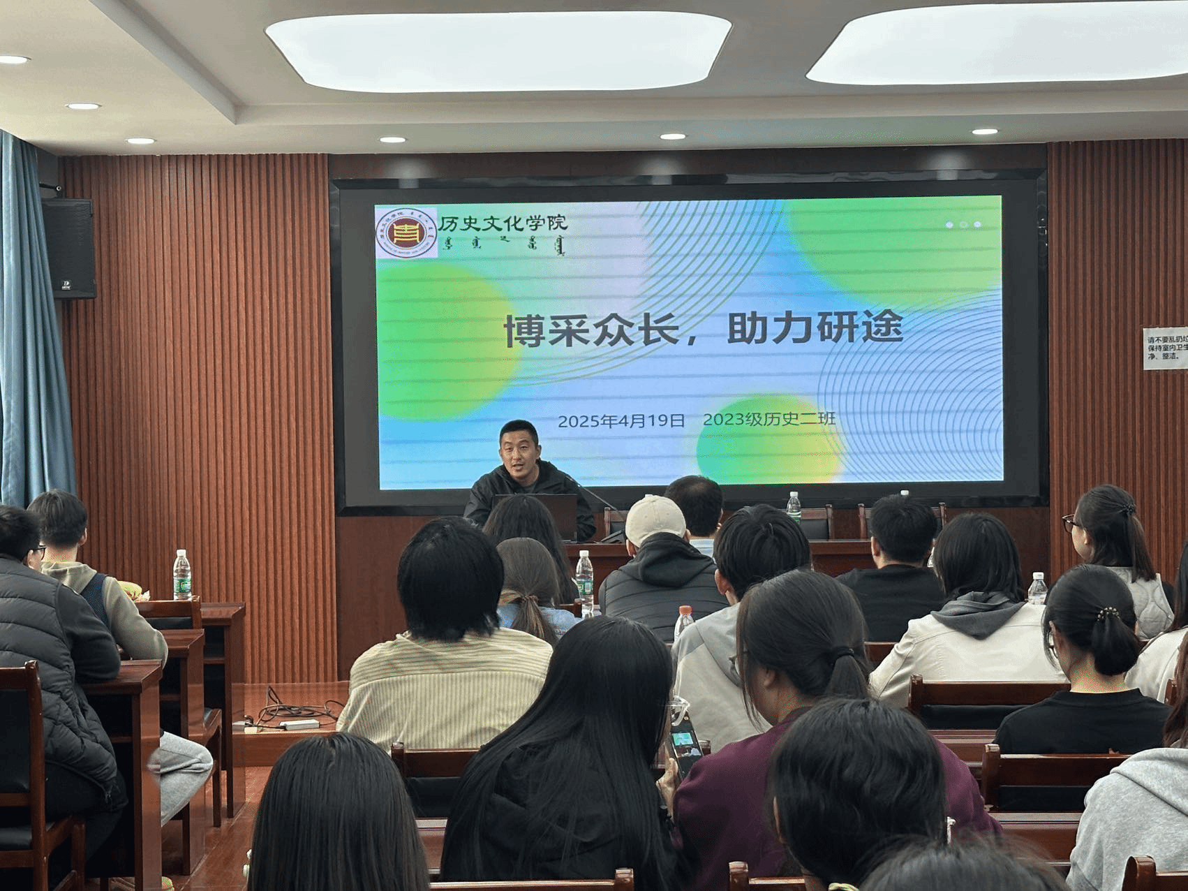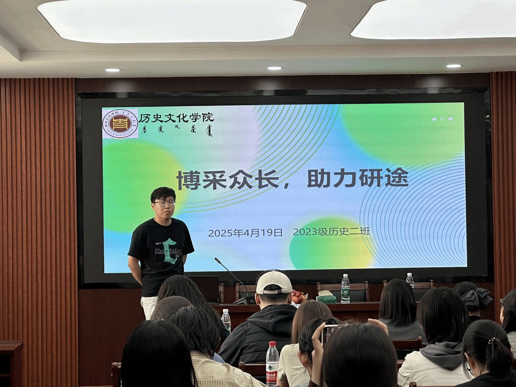 为了让同学们详细了解考研的注意事项,提前规划考研之路,在班主任齐英老师的精心组织下,我院2023级历史学二班于2025年4月19日成功举办了一场主题为“博采众长,助力研途”的考研经验交流会。本次活动吸引了全班五十余名同学以及部分其他年级同学的积极参与。