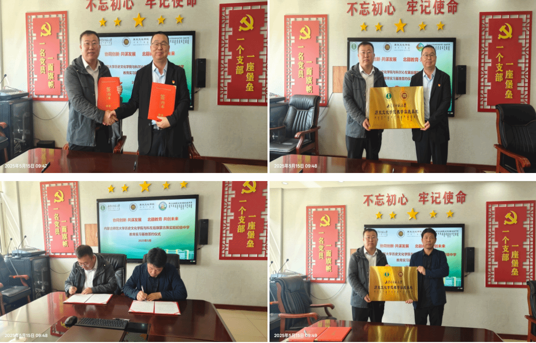 本次调研不仅是实践教学的过程督导,更成为深化校地合作、拓展育人资源的重要契机。学院与科左后旗甘旗卡第一高级中学、科左后旗实验初级中学、奈曼旗实验中学、奈曼旗第一中学、奈曼旗第五中学、奈曼旗蒙古族中学等6所中学签订教育实习基地协议并挂牌,新增实习岗位,为师范生提供更广阔的实践平台。签约仪式上,白林副院长强调:“实习基地是师范生成长为‘四有’好老师的第一站,学院将依托基地建设,推动高校理论教学与基础教育实践深度融合。”
