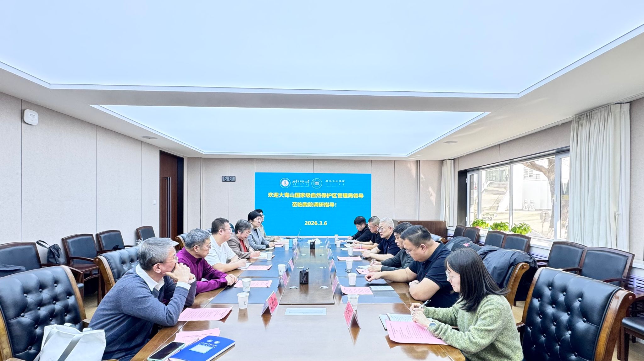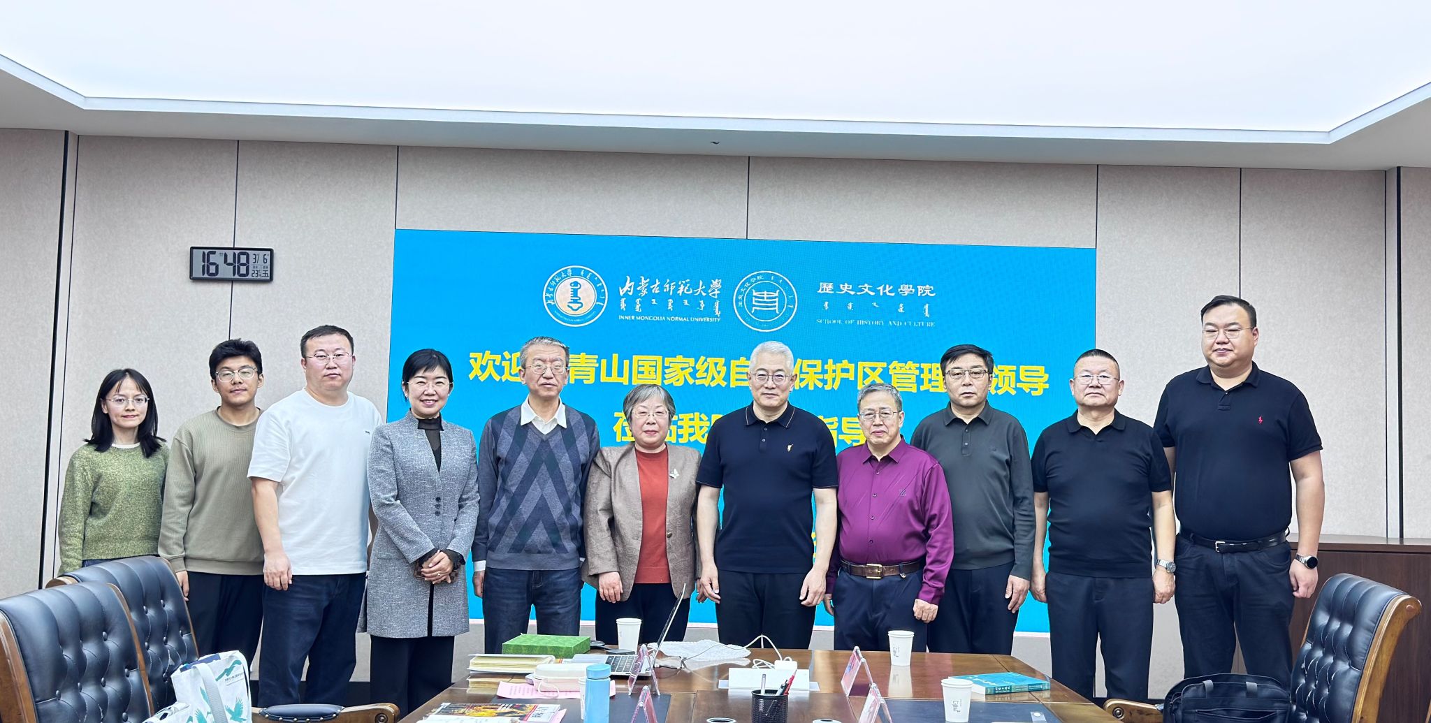 3月6日下午,大青山国家级自然保护区管理局局长牛喜山一行来我院座谈,就充分挖掘大青山历史文化资源征求意见建议。我院党委书记李艳洁,党委副书记、副院长檀晶,副院长白林,学院于永教授,王利中副教授及部分青年教师参加座谈会。