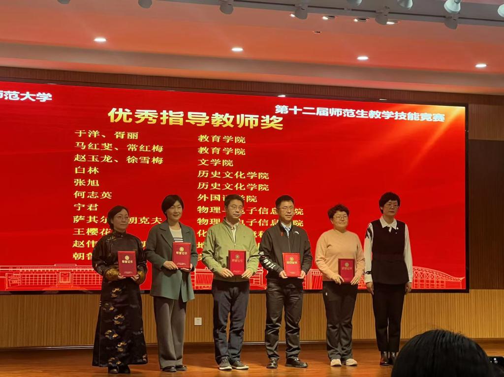 yl8858永利集团高度重视师范生的教学技能培养。学院副院长白林、教学技能训练负责人张旭老师制定了详细的培训计划,通过多轮次的院级比赛,最终遴选出4名同学参加学校决赛,其中甲组2名,乙组2名。参赛同学通过笔试、模拟课堂和教学答辩等环节,展示了出色的课堂驾驭能力和教育理念,赢得了评委的一致好评。