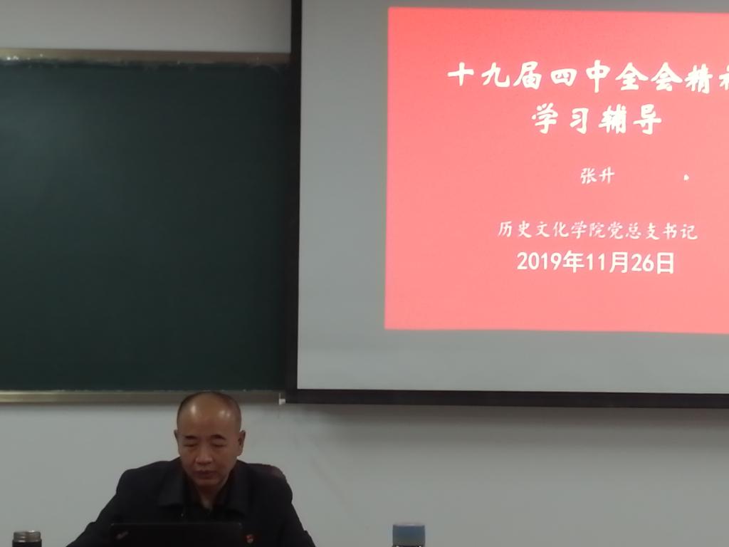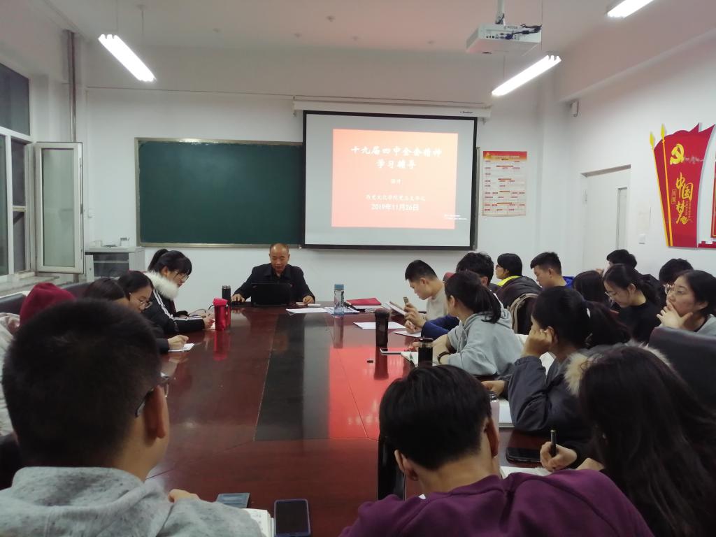 2019年11月26日晚7:30,yl8858永利集团学生党支部组织专题党课,邀请学院党总支书记张升老师为大家做“党的十九届四中全会精神学习辅导”,学院学生党支部全体党员参加学习辅导,辅导中,张升书记就《中国共产党第十九届中央委员会第四次全体会议公报》、《中共中央关于坚持和完善中国特色社会主义制度 推进国家治理体系和治理能力现代化若干重大问题的决定》和习近平总书记所做的《关于〈中共中央关于坚持和完善中国特色社会主义制度 推进国家治理体系和治理能力现代化若干重大问题的决定〉的说明》三份文件的重要意义、内容和学习要点进行了详细讲解。