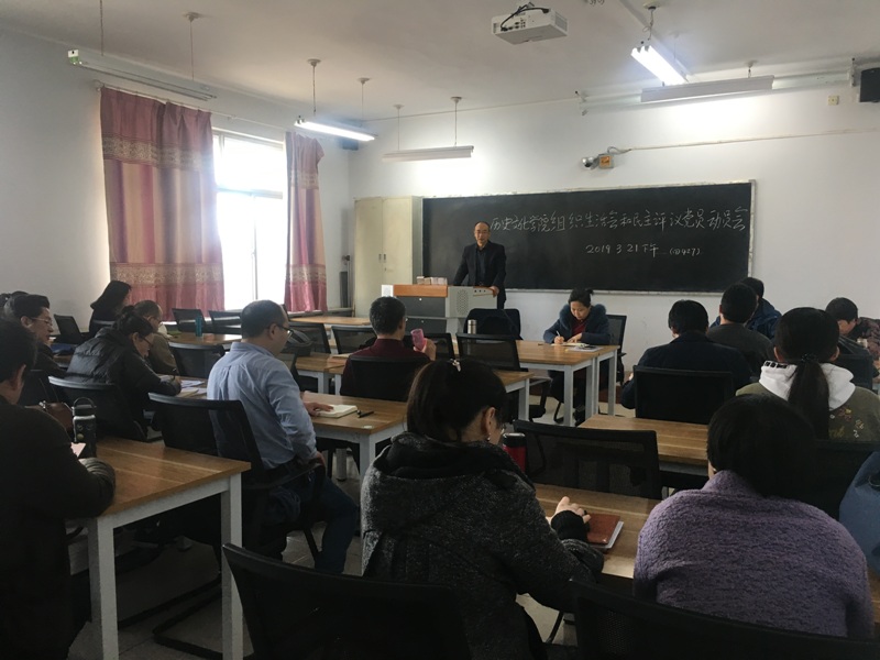 会议由党总支书记张升主持,张书记首先向全体教工党员传达了《关于召开2018年度基层党组织组织生活会开展民主评议党员的通知》校党组字【2019】3号文件精神,强调了开好党支部组织生活会和做好民主评议党员工作的重要意义。随后由党总支副书记宋磊讲解了组织生活会和民主评议党员的程序以及表格填写说明。