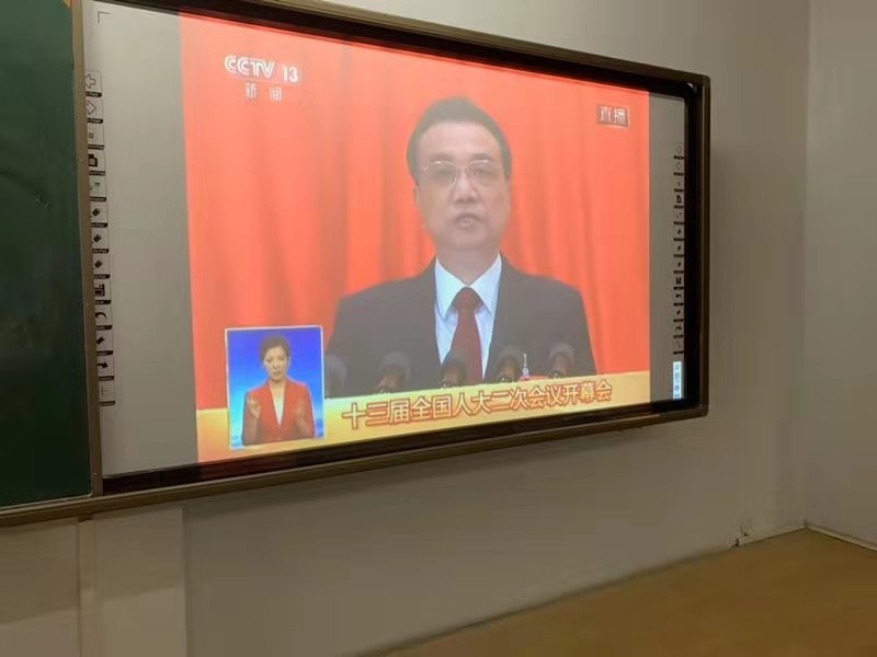 学院党总支书记张升、党总支副书记宋磊、团总支书记钱艳艳与学生党支部全体没课的党员在学院楼502收看开幕式和李克强总理做政府工作报告。