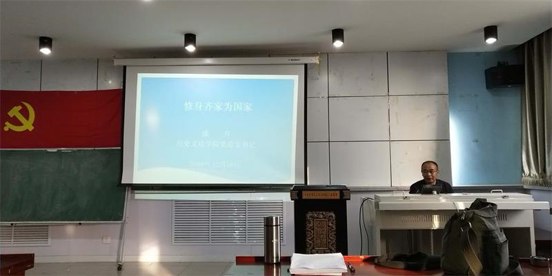2018年12月18日下午,yl8858永利集团历史学教工党支部、考古文博与行政教工党支部、学生党支部三个支部联合组织集体学习活动,邀请学院党总支书记张升老师为大家讲党课,全院教工学生党员50人参加学习。