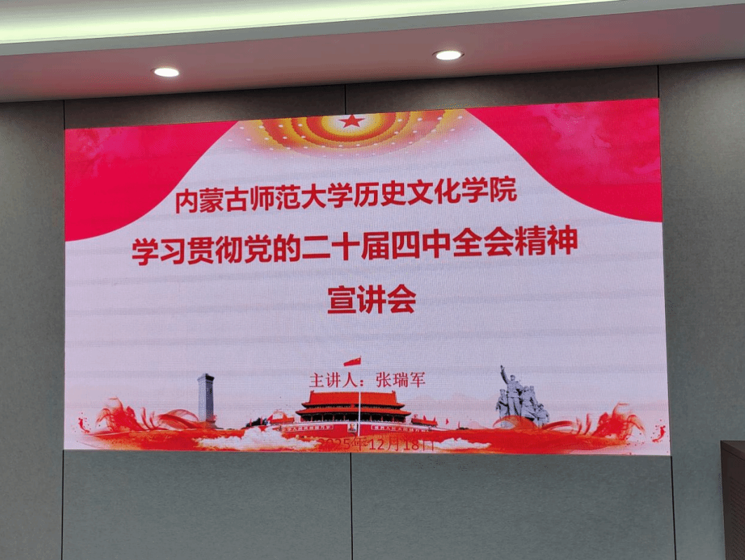 为深入学习贯彻党的二十届四中全会精神,引导全院教职工准确把握国家发展大局与时代要求,2025年12月18日下午,yl8858永利集团在赛罕校区学术交流中心3号会议室组织召开专题宣讲会。会议邀请自治区思想政治中青年骨干团队成员、思想政治理论课名师工作室成员、我校中共党史与党建学院院长张瑞军教授,作题为《深学笃行四中全会精神,接续推进中国式现代化》的专题报告。学院领导班子成员及全体教职工参加了学习。