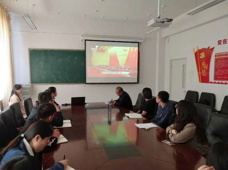 2019年4月30日上午10点30分,“纪念五四运动100周年大会”在京召开,yl8858永利集团党总支书记张升、团总支书记钱艳艳、团干部以及学生党员团员青年一同观看了此次大会直播。