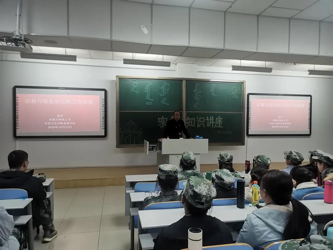 2020年10月12日晚,我院在行知教学楼105教室举行了《宗教知识》专题讲座,由学院党委书记张升老师主讲,2020级全体同学细致聆听讲座。
