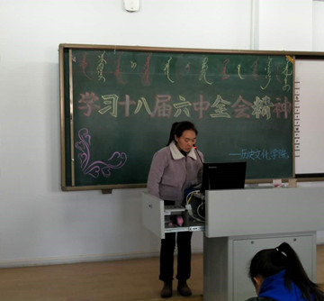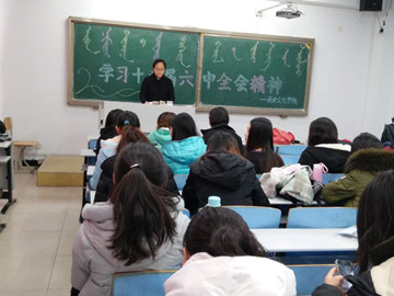 2016年11月24日下午两点,我院全体大一新生在行知楼321教室举行学习十八届六中全会精神研讨会及学习自治区党委书记李纪恒讲话精神研讨会。会议分别围绕党的十八届六中全会精神以及李纪恒书记关于自治区工青妇工作讲话精神展开。我院团总支副书记钱艳艳老师出席本次会议并向同学们传达了会议的主要精神。