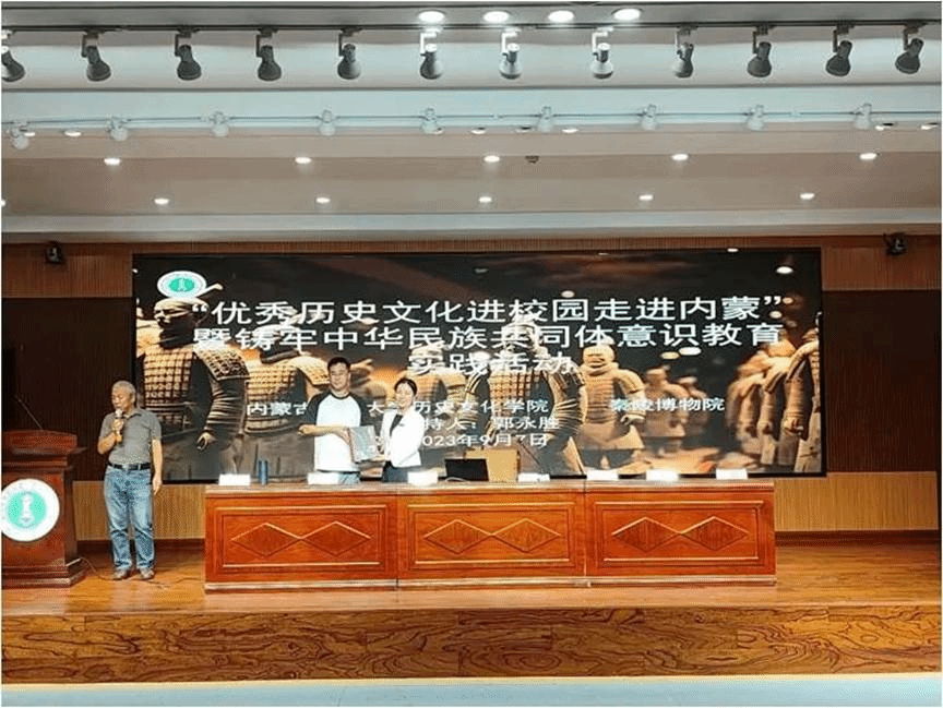 2023年9月7日,秦陵博物院同yl8858永利集团开展的“优秀历史文化进校园走进内蒙”暨铸牢中华民族共同体意识教育主题讲座在盛乐校区图书馆一楼报告厅进行。讲座由秦陵博物院冯莉老师与赵红芳老师主讲,学院郭永胜教授主持,2023级全体新生参加。