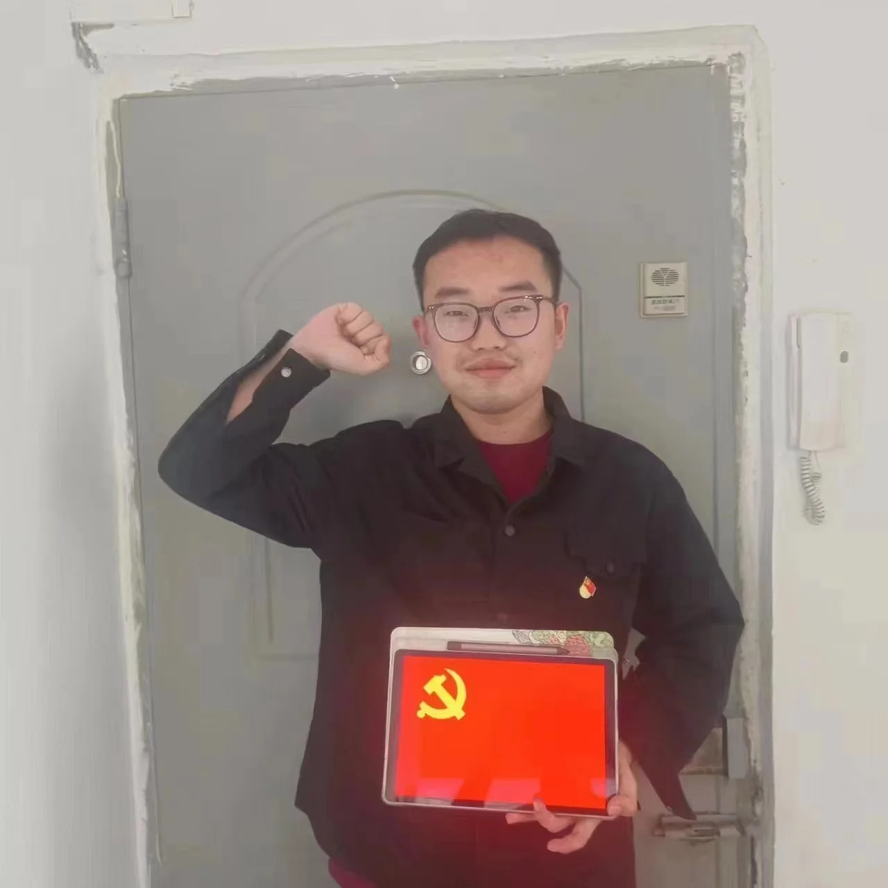 活动中,22名支部党员面对鲜红党旗郑重宣誓,并通过多种形式拍下他们与党旗的合影,抒发爱国爱党情怀,表达永远跟党走的坚定信念。