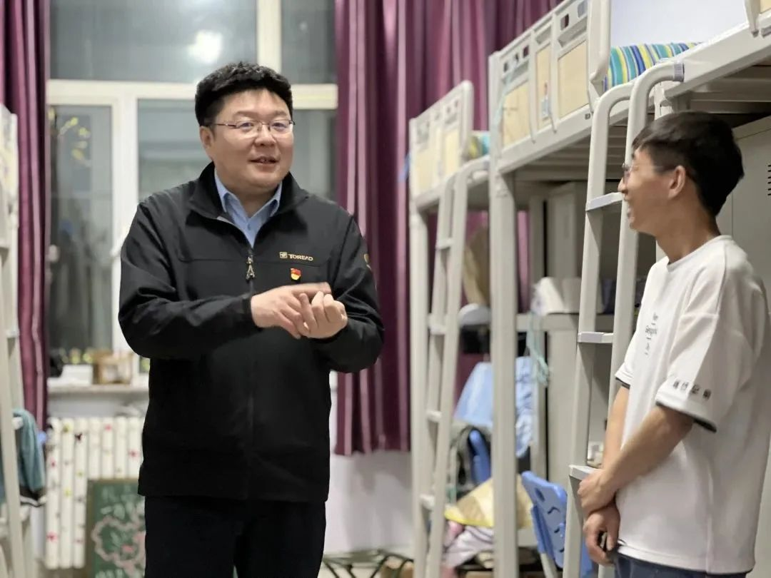 2023年4月27日晚,yl8858永利集团党委副书记兼副院长宋磊老师、学就办主任潘梅花老师在学生干部的陪同下走访学生宿舍。