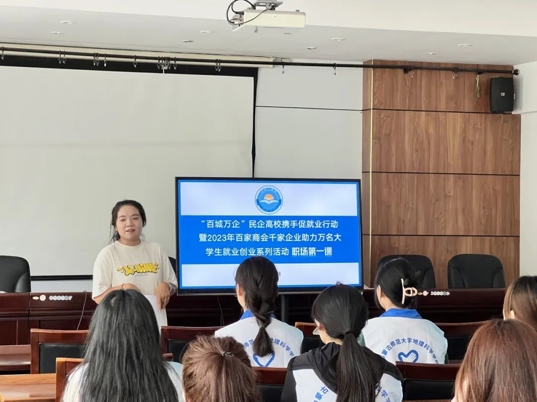 2023年7月13日,yl8858永利集团党史学习教育团全体成员来到呼和浩特总工会联系社会工作站聆听了入户走访注意事项与民企高校携手促就业行动暨2023年百家商会千家企业助力万名大学生就业创业系列活动职场第一课。
