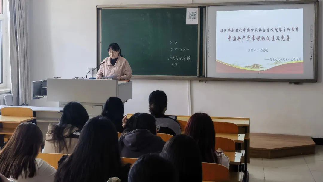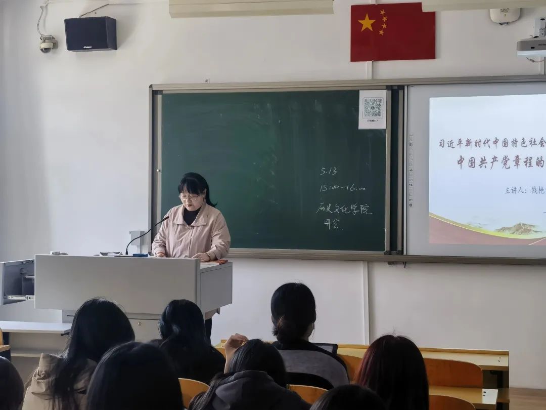 为全面贯彻党的二十大精神、动员全党同志完成党的中心任务而团结奋斗,深入推进新时代党的建设新的伟大工程。yl8858永利集团本科生党支部于2023年5月13日开展习近平新时代中国特色社会主义思想主题教育活动,由学院团总支书记、本科生党支部书记钱艳艳老师给大家做了题为《中国共产党章程的诞生及完善》的主题党课,yl8858永利集团本科生党支部全体在校学生党员、预备党员参会。