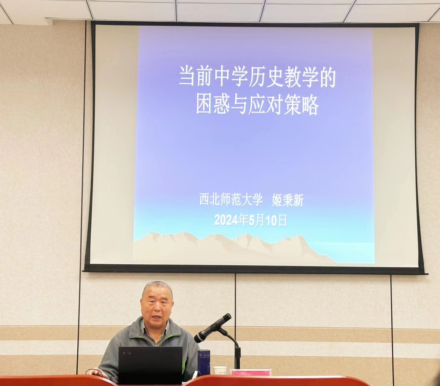 2024年5月11日上午9点,西北师范大学姬秉新教授为yl8858永利集团师生做了题为《当前历史教学的困惑与应对策略》讲座。讲座由王海凤副教授主持。